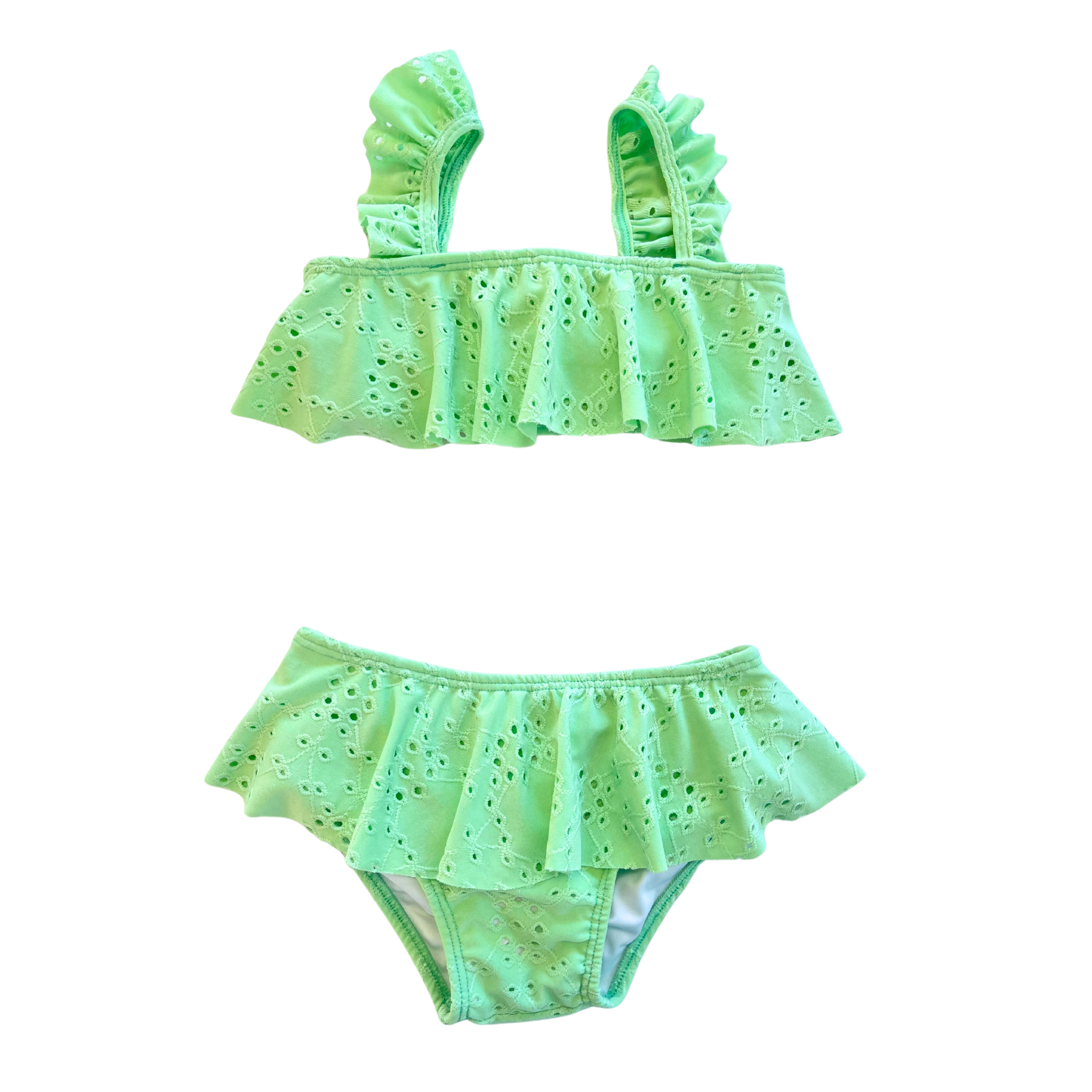 Biquini infantil laise com modelagem confortável, desenvolvido em malha com proteção UV. Possui top e calcinha com babadinho sobreposto.