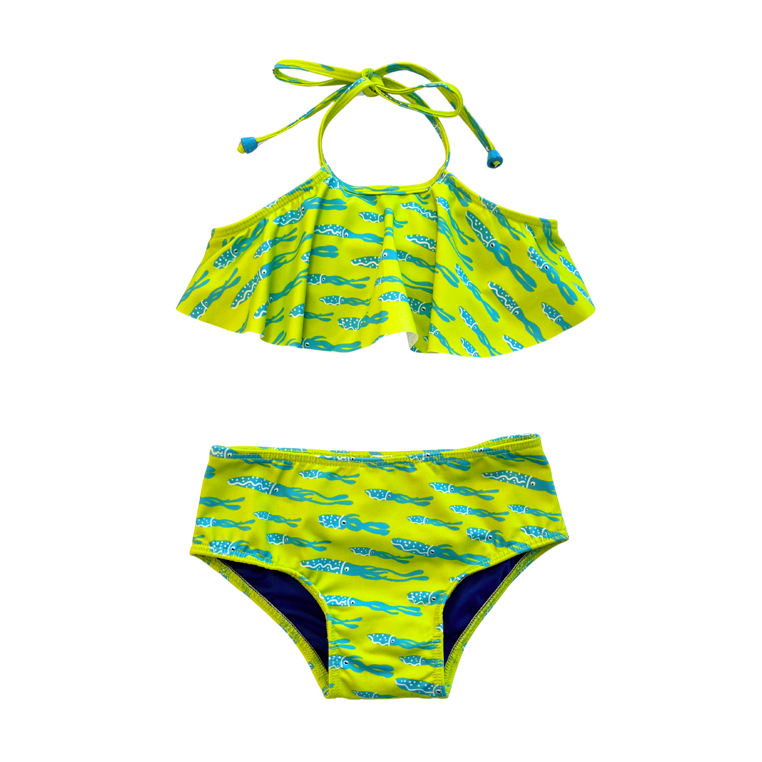 Biquini infantil desenvolvido em malha com proteção UV. Top modelo frente única e calcinha com modelagem confortável. Feito com a nossa estampa exclusiva “LULA”.