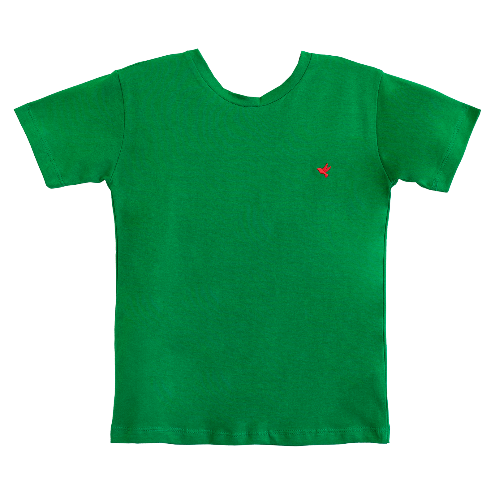 T-shirt em malha de algodão, decote careca, manga curta, bordado pássaro Precoce.