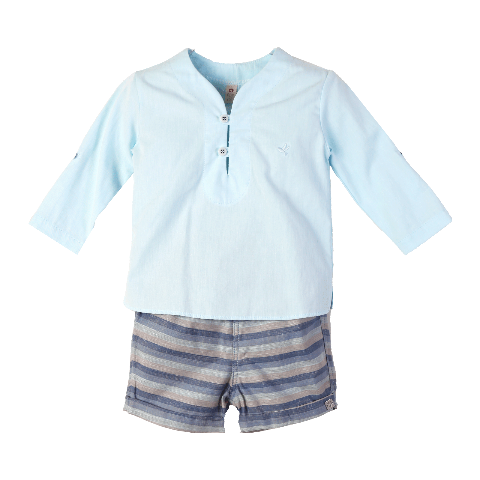 Conjunto bebê masculino. Camisa em tecido de algodão, gola careca, manga longa, com possibilidade de diminuir através do botão, abertura frontal frente modelagem confortável. Bermuda xadrez com elástico na cintura e bolso traseiro, modelagem confortável.