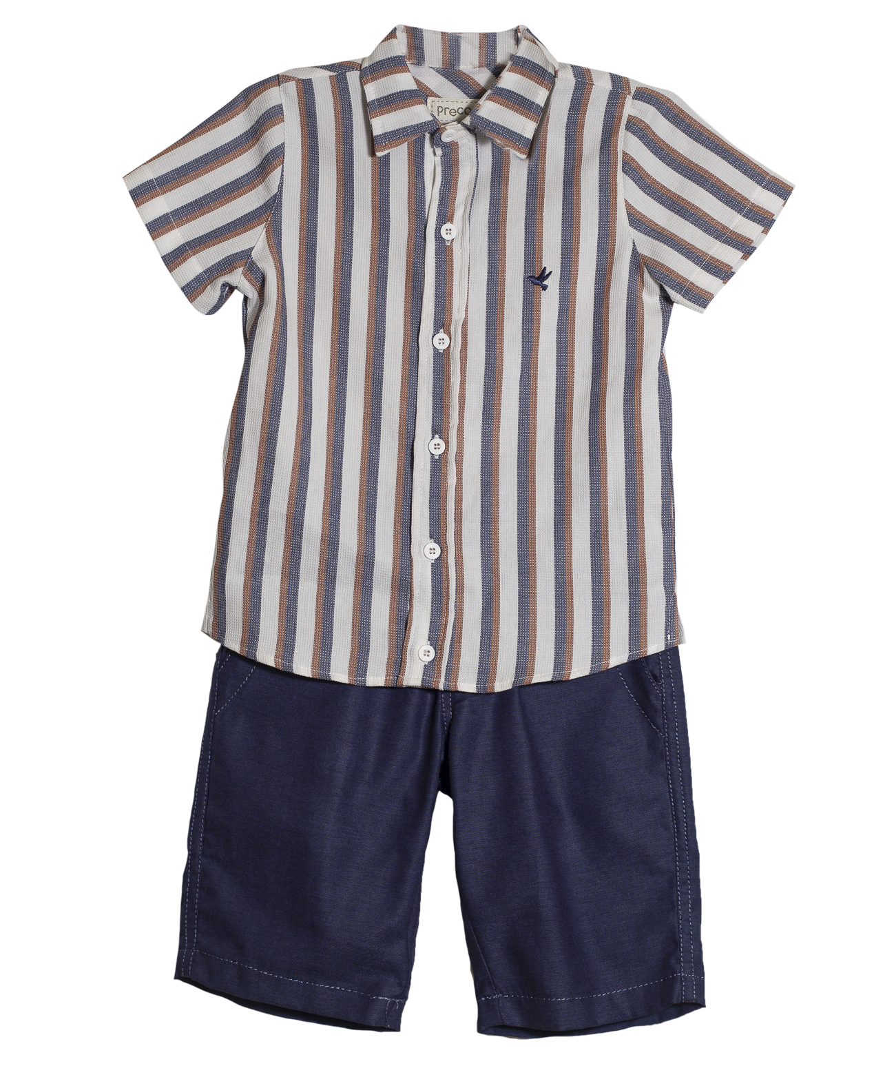 Conjunto infantil masculino, camisa em tecido de algodão, gola e modelagem tradicional, manga curta, e botões na frente.