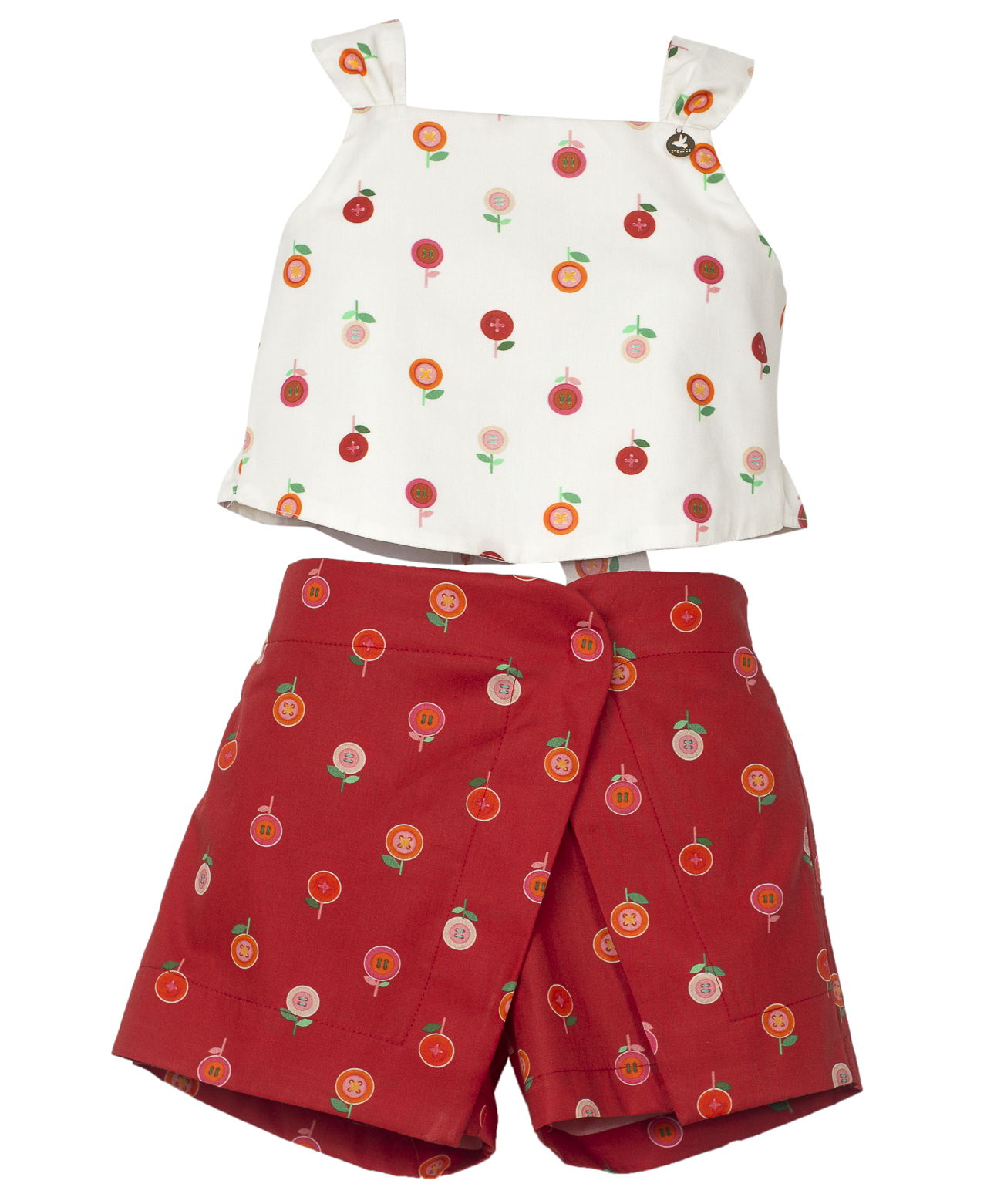 Feito com a nossa estampa exclusiva “BOTÕES DE FLOR FUNDO OFF E VERMELHO”.