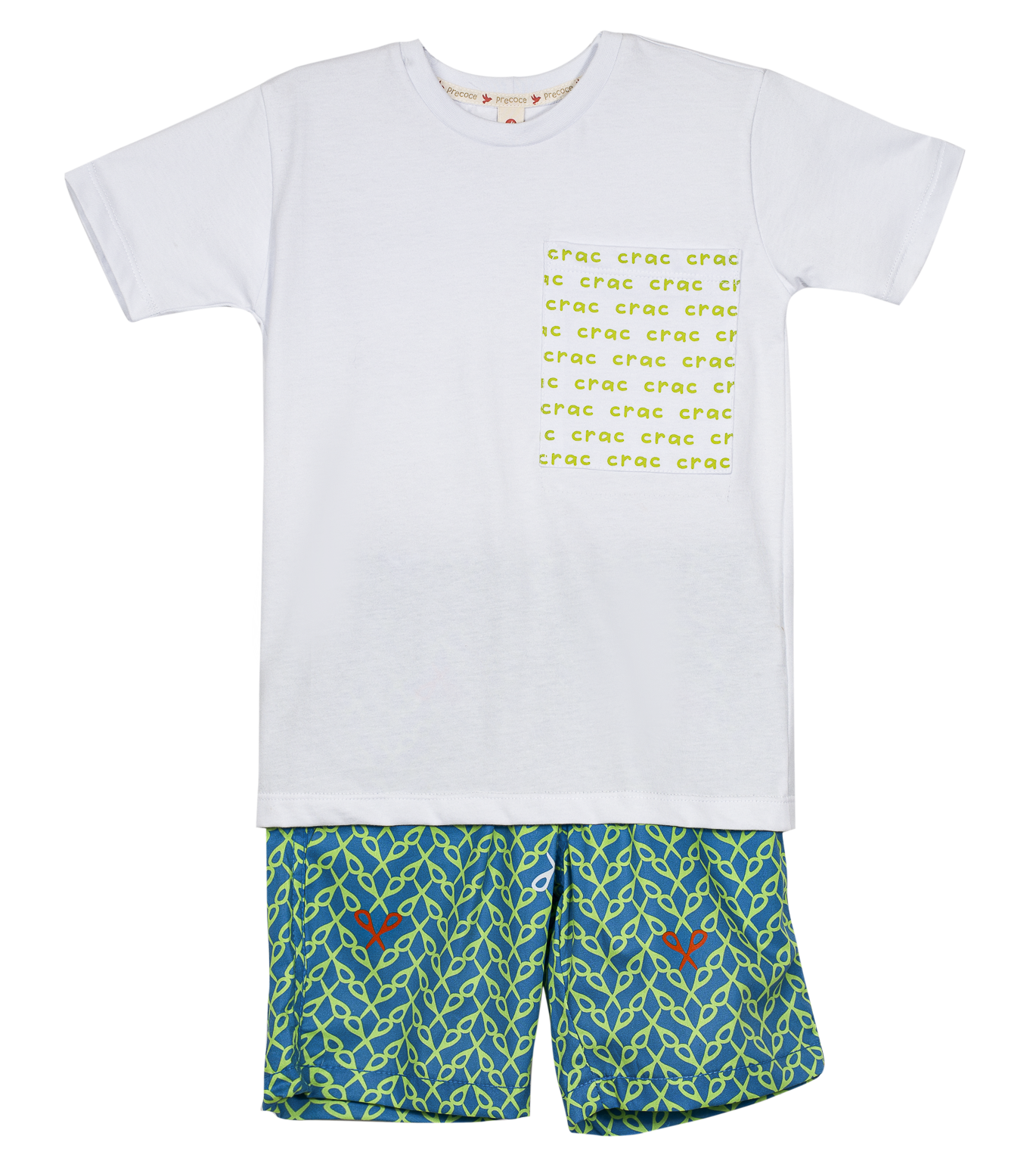 Conjunto infantil masculino, T-shirt em malha de algodão, decote careca, manga curta, estampa localizada.