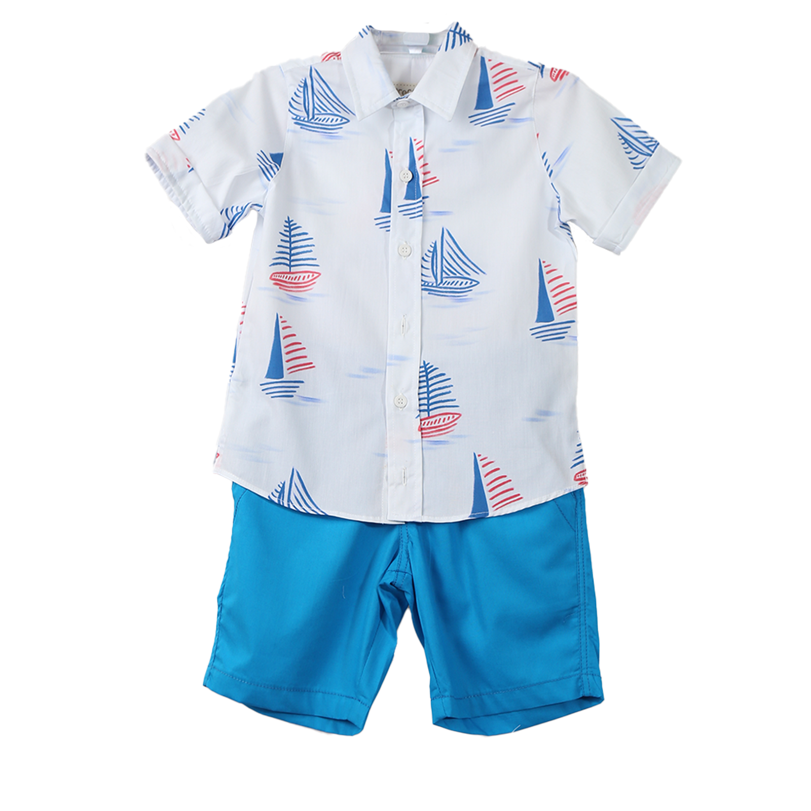 Conjunto infantil masculino, camisa em tecido de algodão, gola e modelagem tradicional, manga curta, e botões na frente. Feita com a nossa estampa exclusiva “PASSEIO DE BARCO”. Bermuda em tecido de algodão, bolso faca, cós com elástico, modelagem confortável.