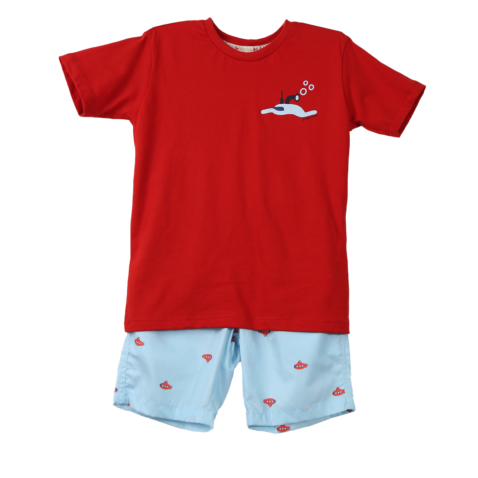 Conjunto infantil masculino, T-shirt em malha de algodão, decote careca, manga curta, estampa localizada. Bermuda em tecido de algodão, elástico na cintura, modelagem confortável, bolso faca, feita com nossa estampa exclusiva “SUBMARINO FUNDO AZUL”. A equipe de estilo e design da Precoce tem o cuidado de desenvolver modelos que permitam a criança ser livre para ser criança.