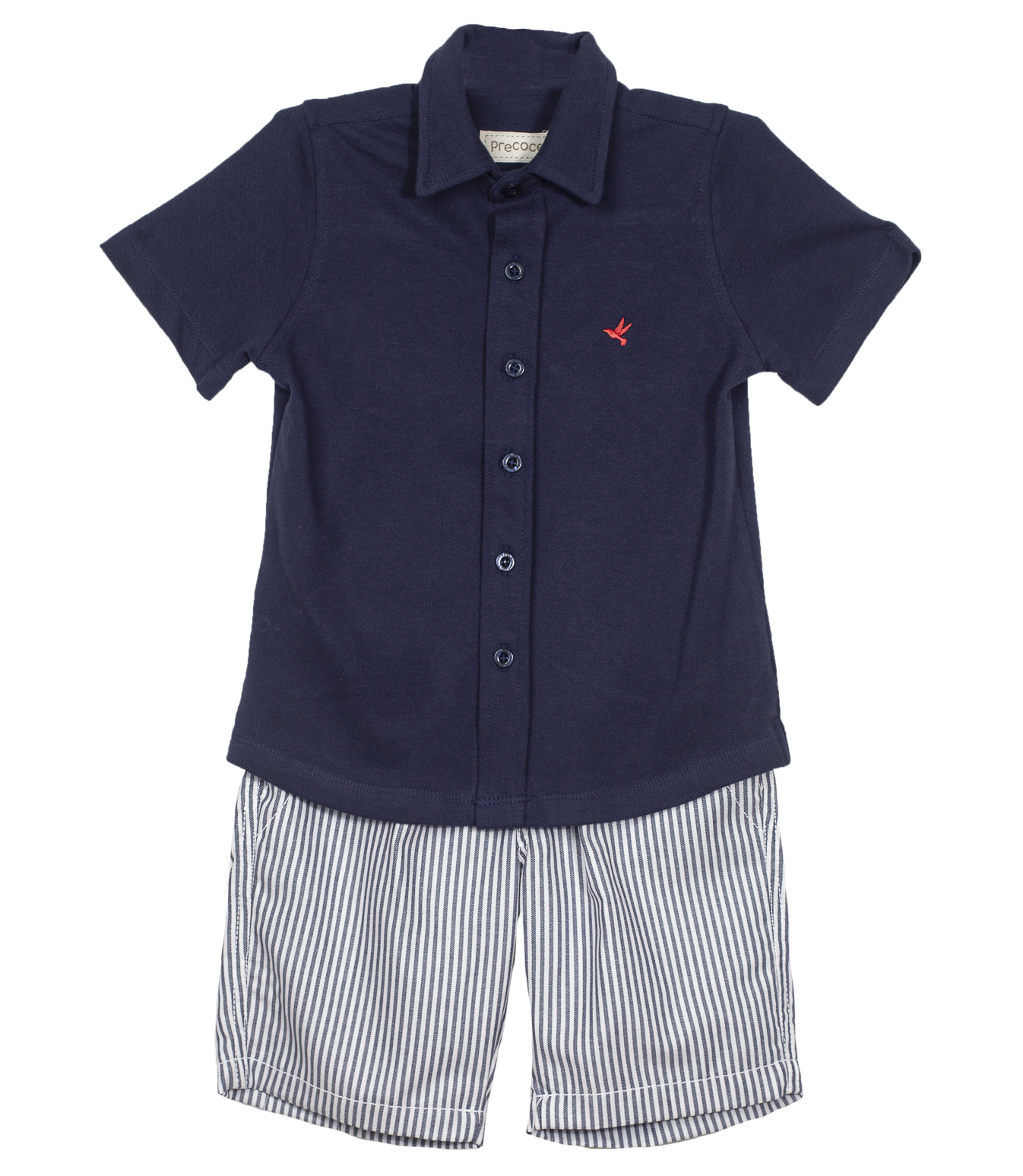 Conjunto infantil masculino, camisa em malha piquet, gola e modelagem tradicional, manga curta, e botões na frente.