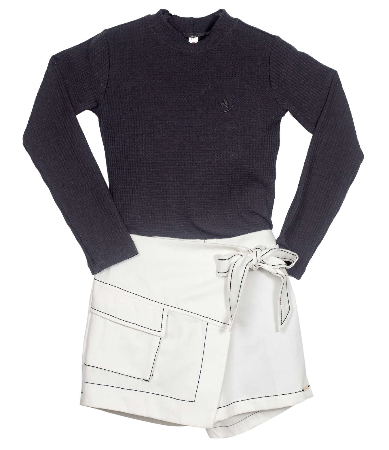 Short -saia com bolso e amarração, elástico nas costas.