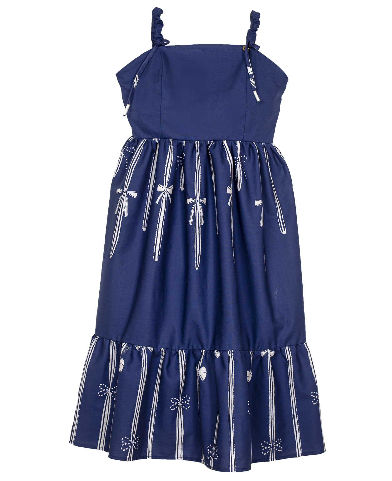 Vestido infantil em tecido de algodão, um ombro só, com babado laço, saia com modelagem godê. Abotoamento nas costas.