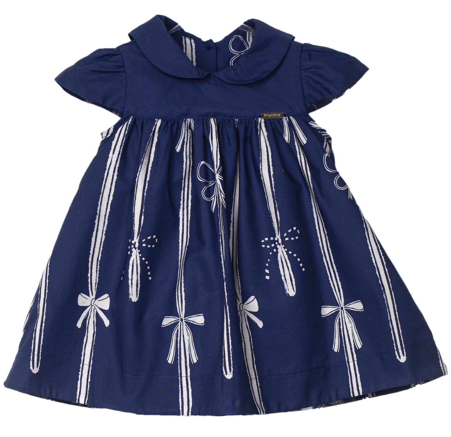 Vestido infantil em tecido de algodão, gola bebê, pala pequena franzindo e abrindo a roda do vestido, mangas fofas. Abotoamento nas costas, modelagem soltinha e confortável.