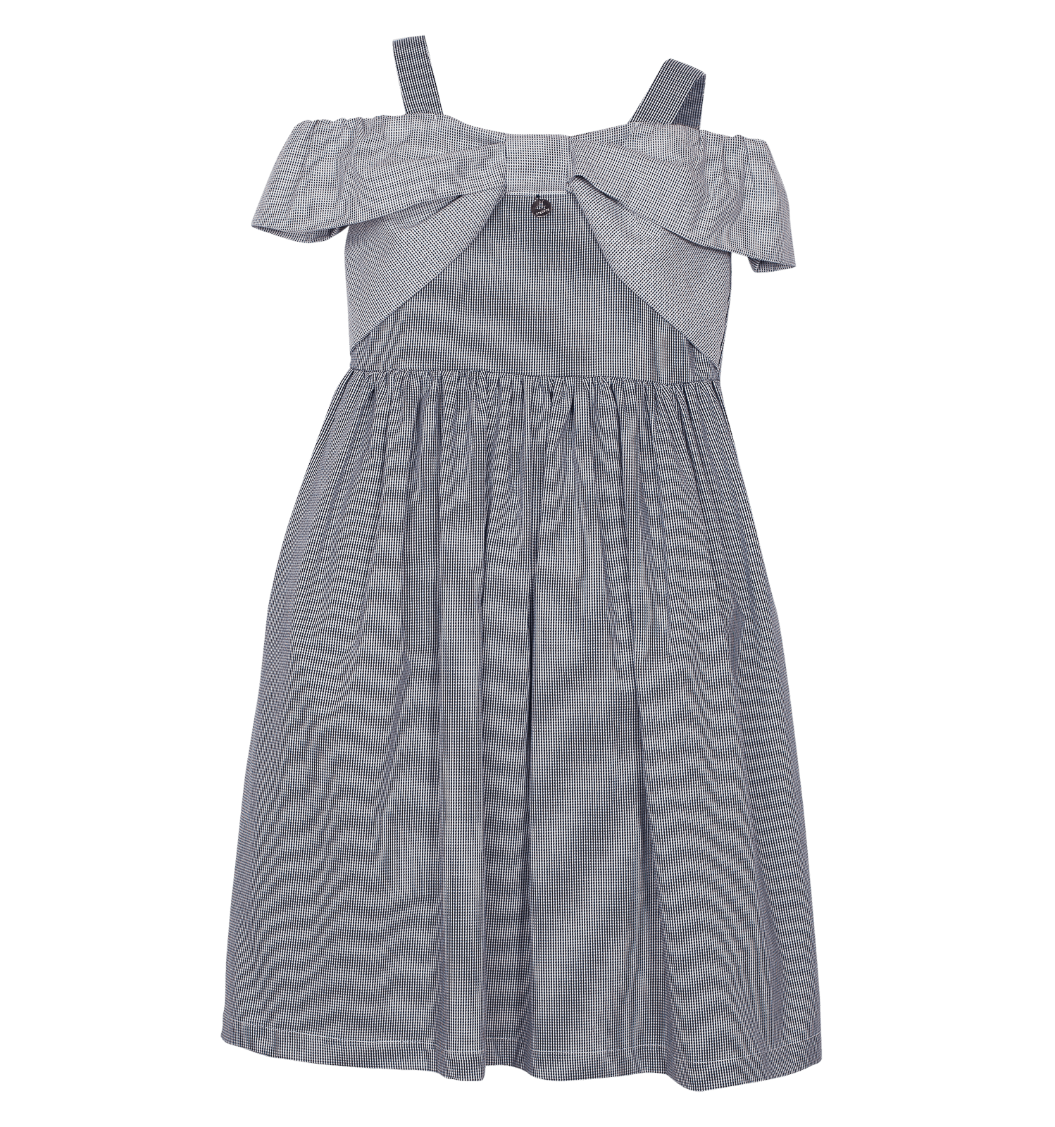 Vestido infantil em tecido de algodão, alças, maxi laço na frente. Saia franzida. Abototmento nas costas. A equipe de estilo e design da Precoce tem o cuidado de desenvolver modelos que permitam a criança ser livre para ser criança.