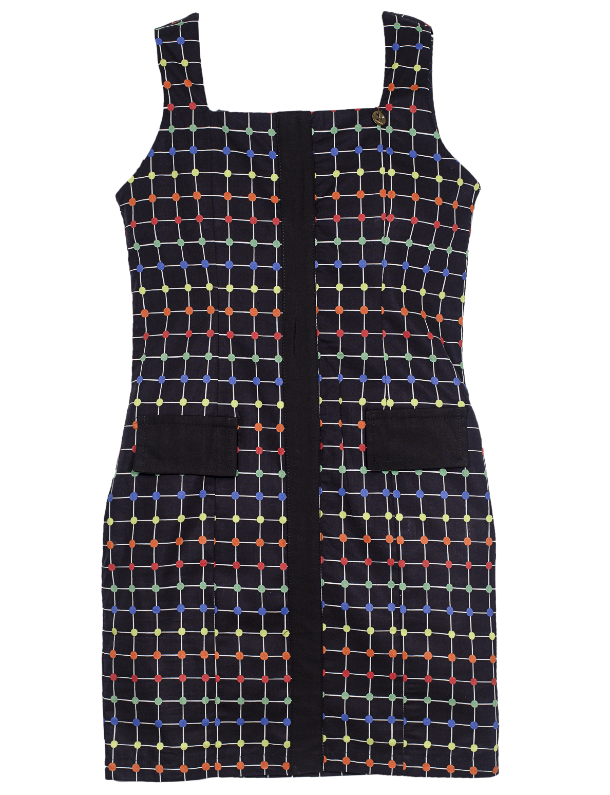 Vestido infantil em tecido de algodão, decote reto, alças, modelagem tubinho. Zíper nas costas.