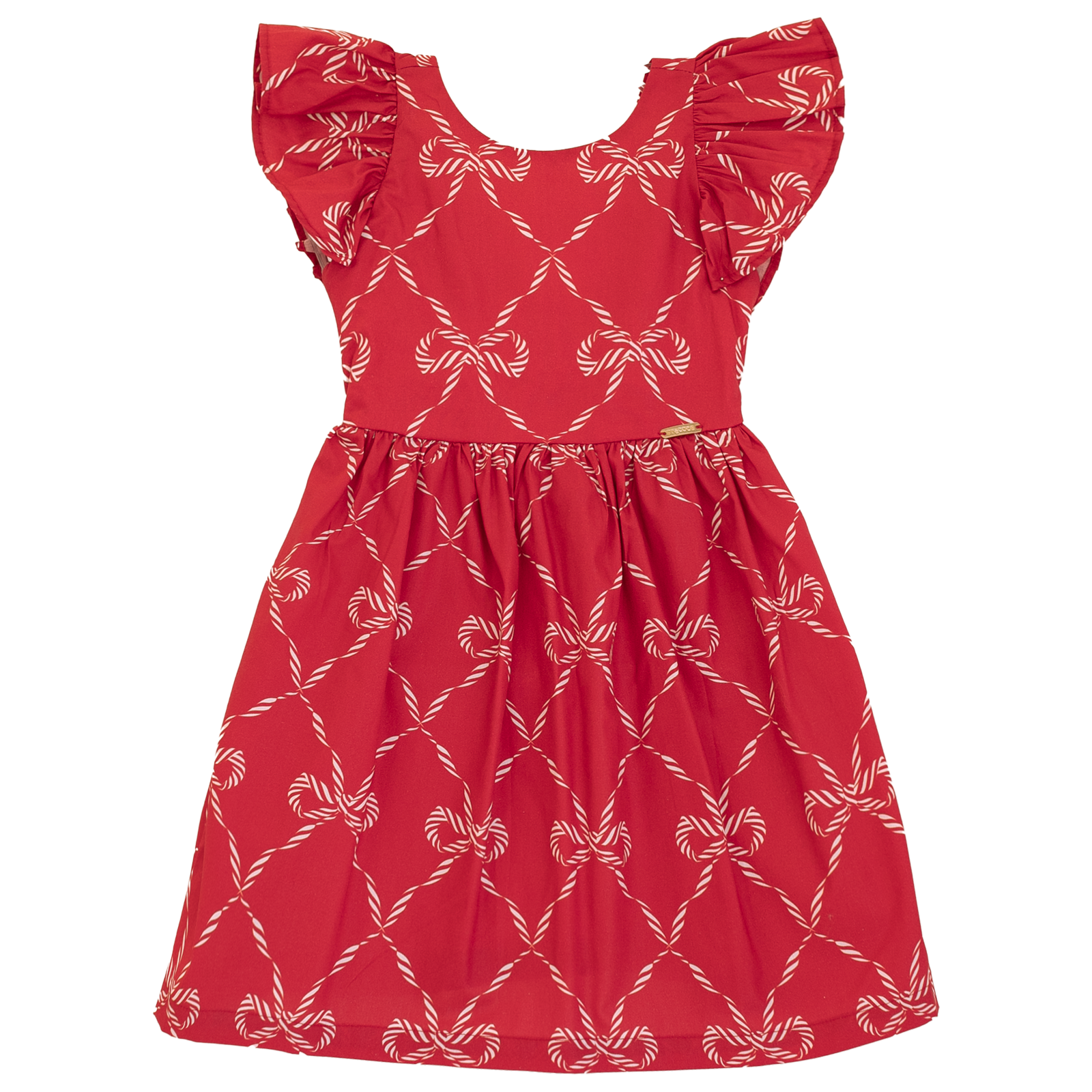 Vestido infantil em tecido de algodão, decote em U, mangas de babadinhos embutidos, decote nas costas com laços, saia rodada. Feito com a nossa estampa exclusiva “LAÇO CANDY CANES VERMELHO E BRANCO”. A equipe de estilo e design da Precoce tem o cuidado de desenvolver modelos que permitam a criança ser livre para ser criança.