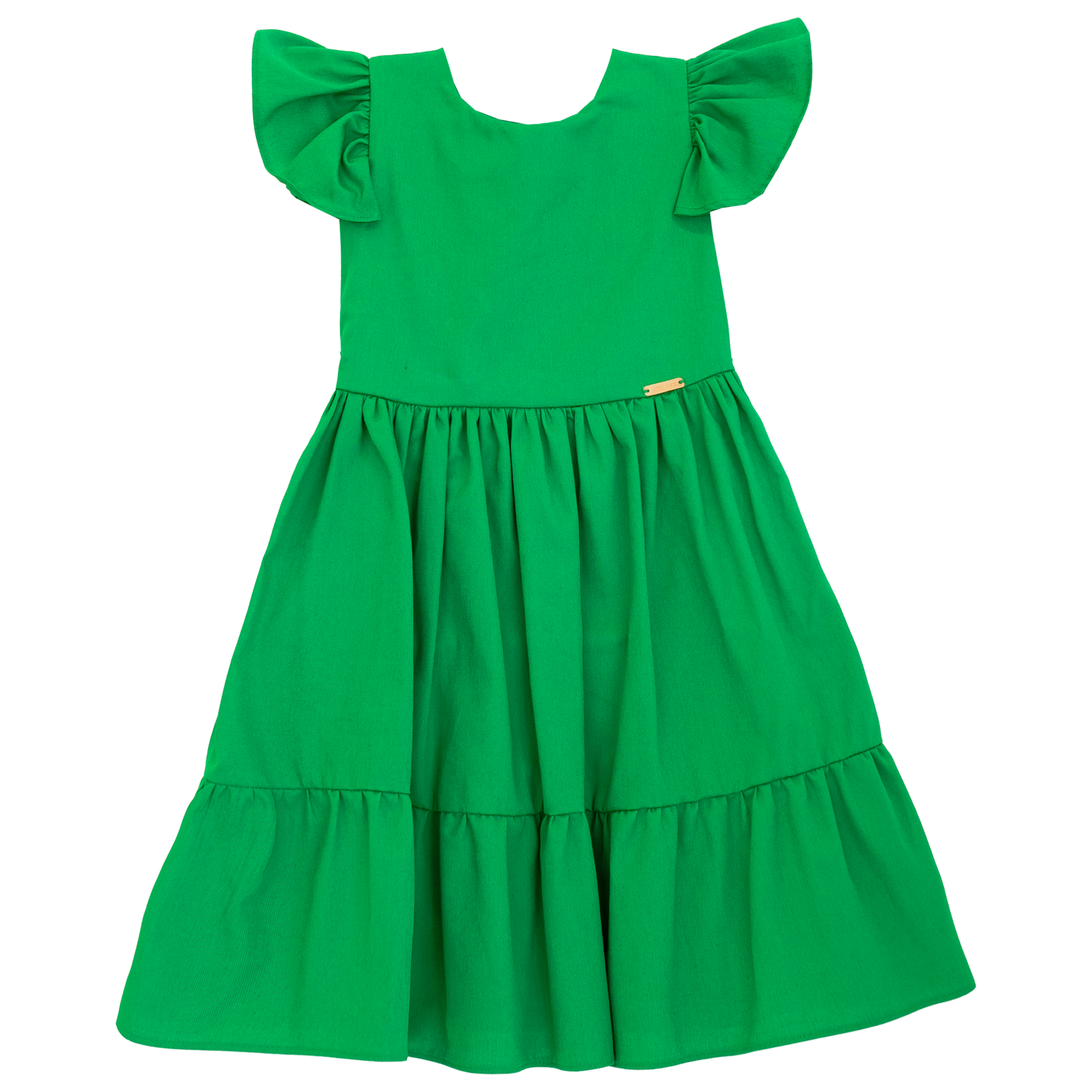 Vestido infantil em tecido de algodão, decote em U, manga franzida, cintura marcada, decote nas costas com laço e lastex, babado na barra. A equipe de estilo e design da Precoce tem o cuidado de desenvolver modelos que permitam à criança ser livre para ser criança.